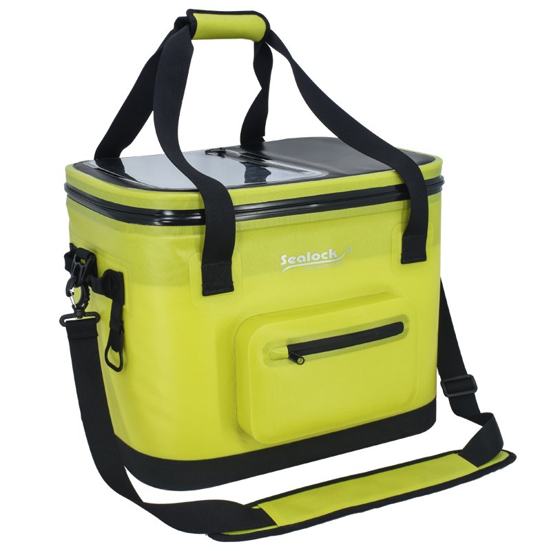 One-Piece konstruktionskylare är strömlinjeformad med en integrerad femlagerskonstruktion, som kasserar överflödiga fickor för att förbättra isoleringens varaktighet. Fodret på SEALOCK 24cans Waterproof Soft-Sided Cooler Bag är gjord av livsmedelsklassad, läckagesäker PEVA-isolerad liner. När den används med isbitar kan den hålla föremål svala i mer än 48 timmar (Obs: Den faktiska kylförvaringstiden kommer att påverkas av den omgivande temperaturen och mängden isbitar som används)
